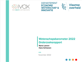 De wetenschapsbarometer is een bevragingsinstrument om het draagvlak voor wetenschap en technologie bij verschillende doelgroepen te bepalen. Een eerste bevraging (nulmeting) werd in het voorjaar van 2018 georganiseerd een tweede meting werd georganiseerd einde 2019 en een derde meting werd georganiseerd einde 2020.