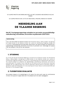 De Vlaamse Regering keurt het Actieplan ter preventie van gewelddadige radicalisering, extremisme, terrorisme en polarisatie 2020-2024 goed. Het actieplan bevat initiatieven vanuit de verschillende beleidsdomeinen, binnen de doelstellingen zoals vastgesteld door de Vlaamse Regering op 17 juli 2020.